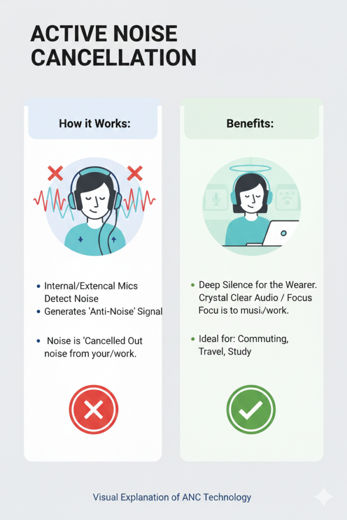 Pro Tip: In 2026, the best premium earbuds usually feature both. They use ANC to give you peace and quiet, and cVc 8.0 to ensure your boss hears you clearly.